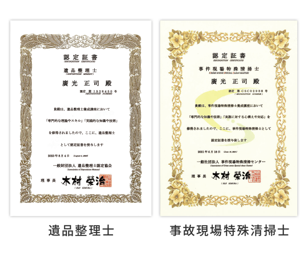| 2024年 11月 | 一般財団法人 遺品整理認定協会より「2023年度 優良事業所」を授与 |